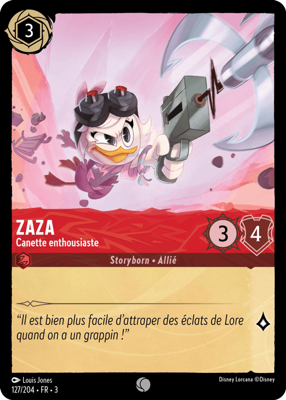 Carte à collectionner Disney Lorcana Zaza - Canette enthousiaste numéro 127 (Commune) en français, en très bon état (protégée par une sleeve après sortie de booster).