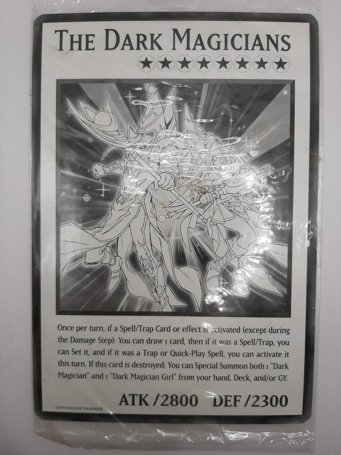 Carte géante "The Dark Magicians" en anglais, neuve en sachet scellé.