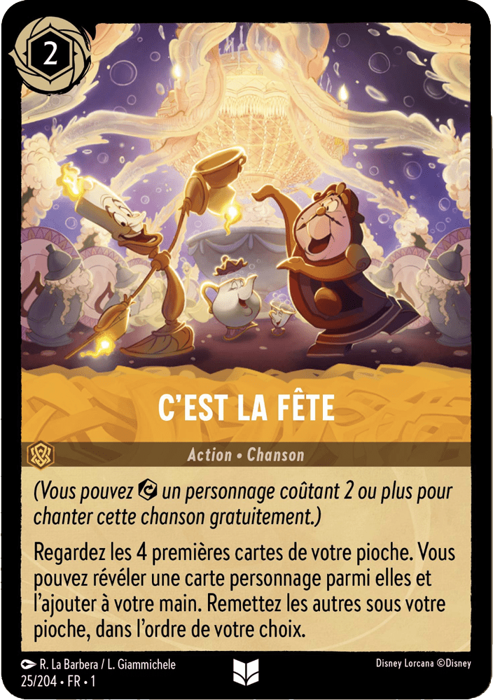 Carte à collectionner Disney Lorcana C'est la fête numéro 25 (Peu commune) en français, en très bon état (protégée par une sleeve après sortie de booster).
